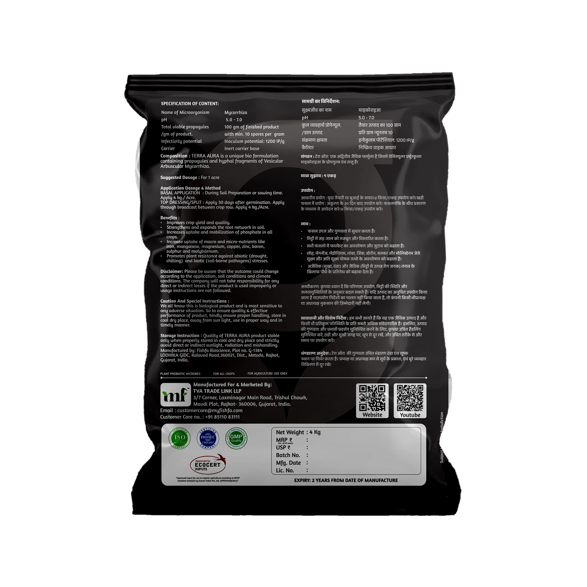 Terra Cure controls soil-borne fungi (black + white) and decomposes organic matter in the soil, converting it into organic fertilizer.